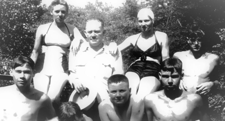 L-R Front: Ross Finch, Thomas Sanders, Jack Sanders, Bob Sanders. L-R Back: Willadine McCarver, Kelley Sanders, Virginia Sanders, James O. Sanders