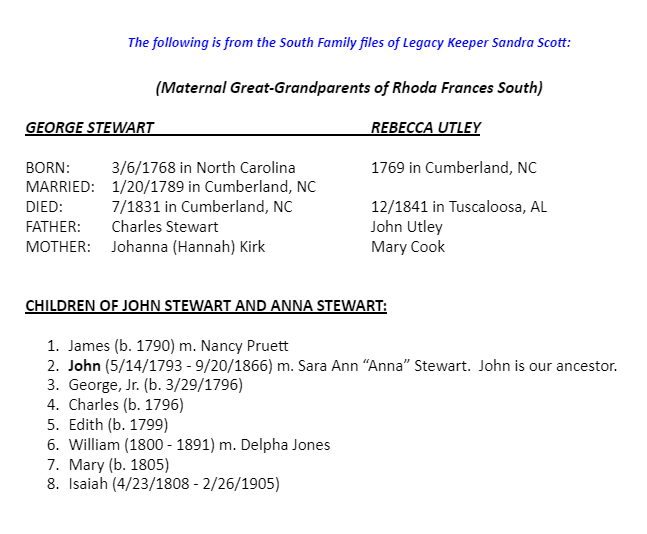 George Stewart and Rebecca Utley Genealogical Information