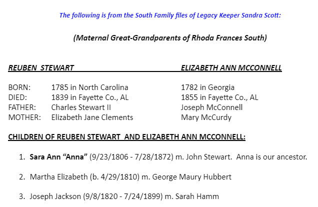 Reuben Stewart and Elizabeth Ann McConnell Genealogical Information
