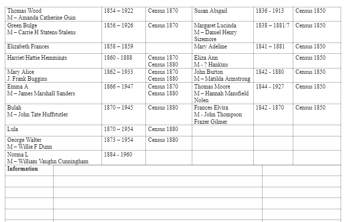 The following genealogical information is from the Woods Family files of Legacy Keeper Janis McCoy:
